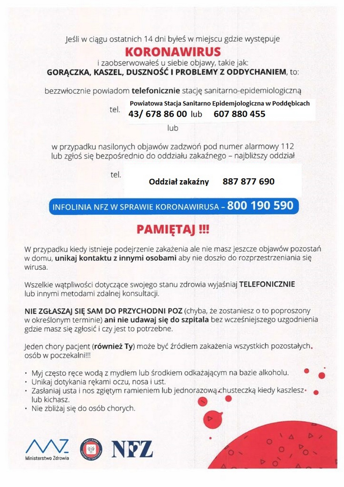 COVID-19 - ALARMOWE NUMERY TELEFONÓW